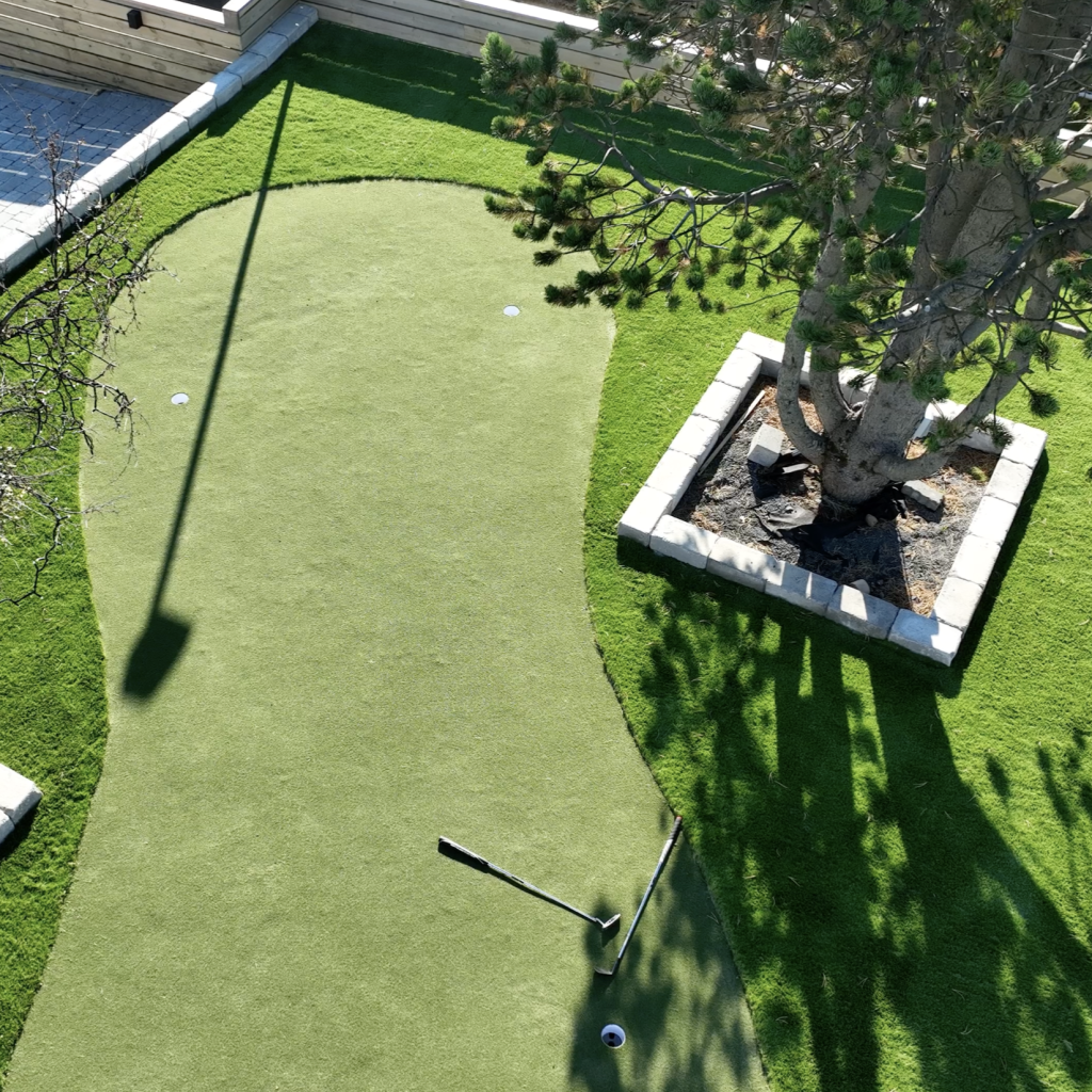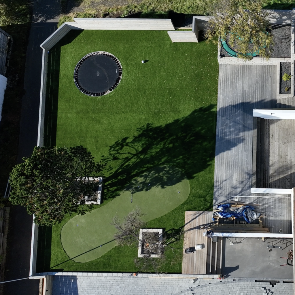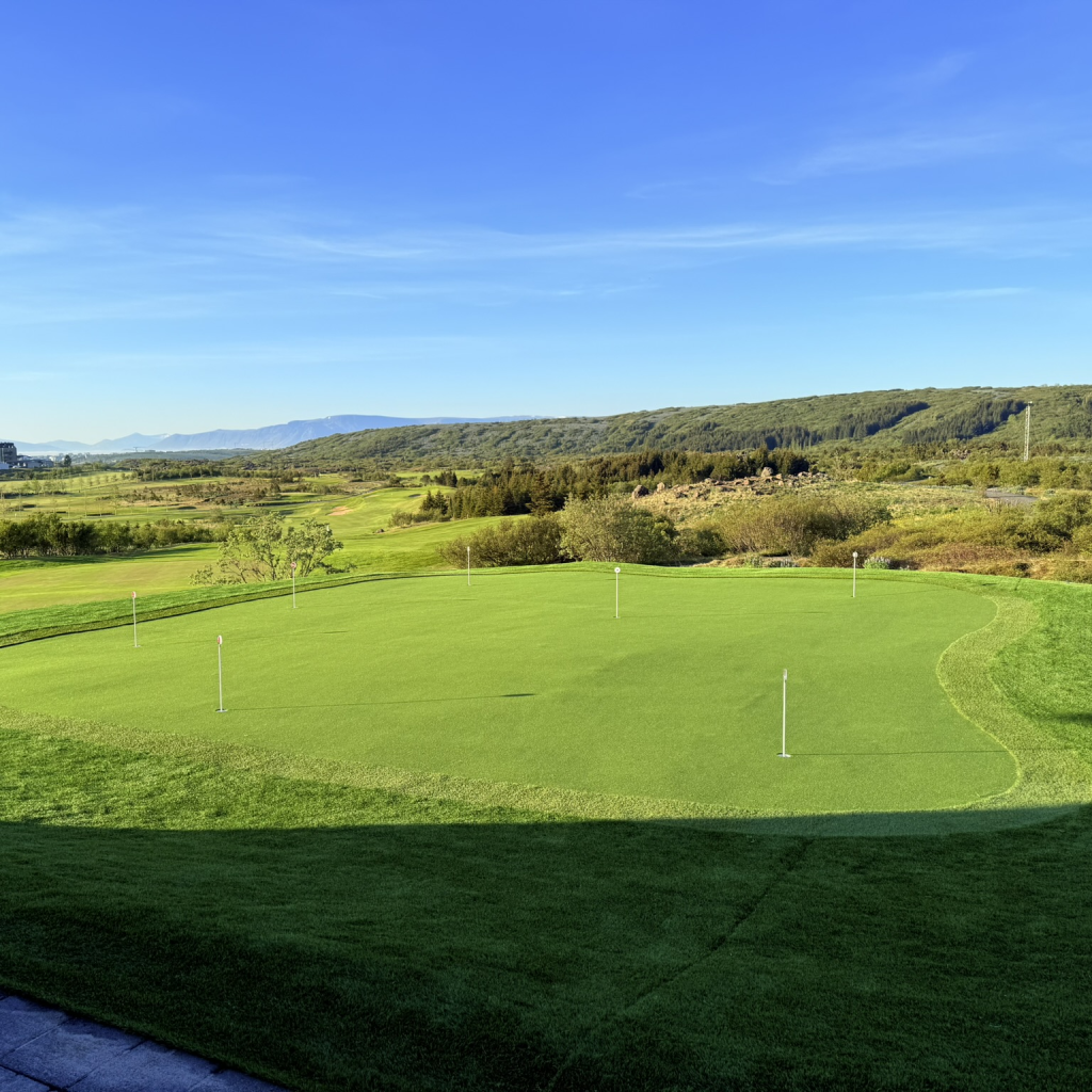 Púttgrín í heimahús! Flötin er lögð með PrecicionPutt, sem er byltingarkennt gras frá samstarfaðila okkar SYNLawn